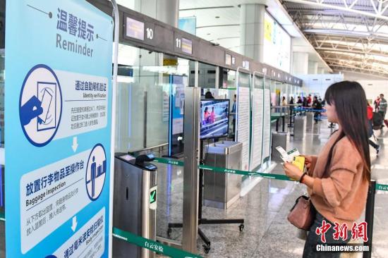 資料圖:旅客通過“自助智能安檢通道”進入候機樓。中新社記者 陳驥旻 攝