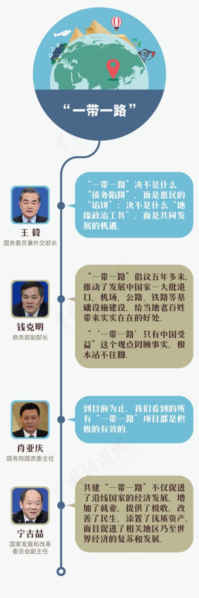 對此,國務委員兼外交部長王毅指出,“一帶一路”決不是什么“債務陷阱”,而是惠民的“餡餅”;決不是什么“地緣政治工具”,而是共同發(fā)展的機遇。