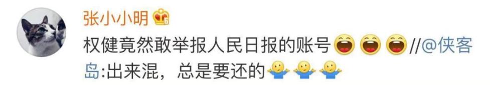 因為俠客島是人民日報海外版旗下的官方賬號。換言之,權(quán)健在被立案調(diào)查后,把指出他問題的人民日報的報道給舉報了……