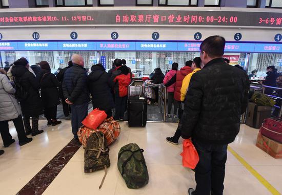 旅客在北京火車站窗口購票、取票。新京報記者 吳寧/攝