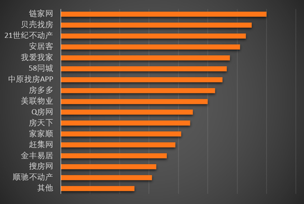 在行業主要品牌認可度方面,57.05%的受訪者對互聯網房產交易服務平臺的房源信息真實性表示滿意,品牌方面,受訪者對鏈家網、貝殼找房、21世紀不動產、安居客、我愛我家APP、58同城等全國性主流品牌在房源信息真實性一項滿意度相對較高。其中,成立不到一年的貝殼找房,在房源信息真實性認知排名中名列第二位,排在第一位的是“同源“的鏈家網,其余3~10名分別為21世紀不動產網站/App、安居客、我愛我家網站/App、58同城、中原找房APP、房多多、美聯物業網站APP和Q房網。