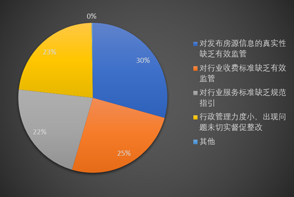 報告同時指出,89.26%消費者認為對互聯網房產交易服務平臺的發布真實性缺乏有效監管。在認為政府相關部門監管不到位的受訪者中,認為對互聯網房產交易服務平臺監管不到位主要表現在以下四個方面:89.26%的受訪者認為政府對互聯網房產交易服務平臺發布的信息真實性缺乏有效監管;76.67%的受訪者認為政府對互聯網房產交易服務平臺的行業收費標準缺乏有效監管;67.78%的受訪者認為政府對互聯網房產交易服務平臺的服務標準缺乏規范指引;70%的受訪者認為政府對互聯網房產交易服務平臺的行政管理力度小,出現問題未切實督促整改。