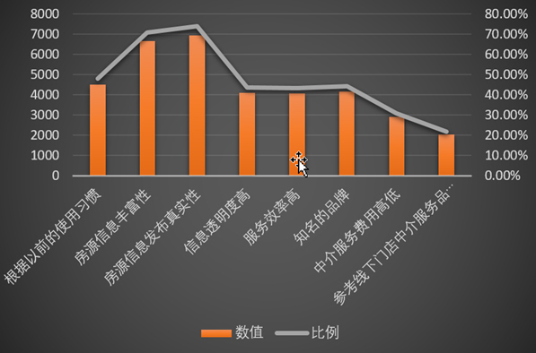 與此同時,在73.75%消費者眼中,房源信息發布的真實性是其選擇互聯網房產交易服務平臺的最重要因素,70.79%的受訪者認為房源信息豐富性是重要因素,僅有30.84%的受訪者表示會重點考慮中介服務費高低在房源信息真實性需求中, 89.27%的受訪者認為可靠的房產信息服務,要保證房源真實存在,83.62%的受訪者認為房源圖片、視頻需要保證真實,83.43%消費者認為房源在售情況必須真實。