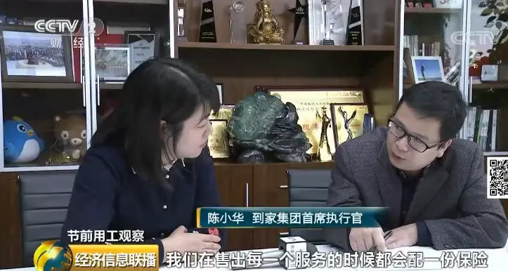 到家集團CEO陳小華:我們在售出每一個服務的時候都會配一份保險,我們公司大概一年向保險公司光投就要投兩三千萬。我們每一個阿姨現在還要上一個培訓,一個阿姨要3000元,目前這個培訓是免費的。