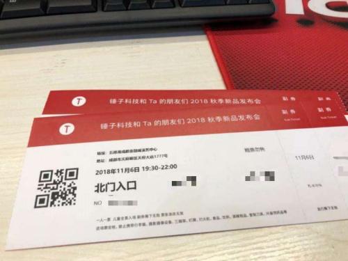 資料圖:錘子新品發(fā)布會(huì)門(mén)票。來(lái)源:受訪者供圖。