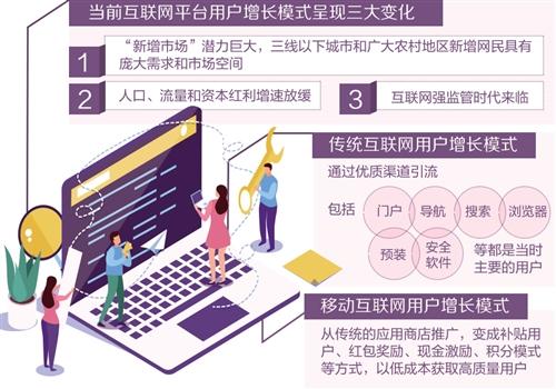 人民網(wǎng)新媒體智庫發(fā)布的《互聯(lián)網(wǎng)平臺(tái)用戶增長模式發(fā)展趨勢觀察報(bào)告》顯示,當(dāng)前互聯(lián)網(wǎng)平臺(tái)用戶增長模式呈現(xiàn)三大變化。一是“新增市場”潛力巨大,人們認(rèn)識(shí)到三四五線城市和廣大農(nóng)村地區(qū)新增網(wǎng)民的龐大需求和市場空間,具有較大的發(fā)展價(jià)值和意義;二是互聯(lián)網(wǎng)普及,人口、流量和資本紅利增速放緩,互聯(lián)網(wǎng)新增市場發(fā)展引發(fā)重視;三是互聯(lián)網(wǎng)的強(qiáng)監(jiān)管時(shí)代的來臨。