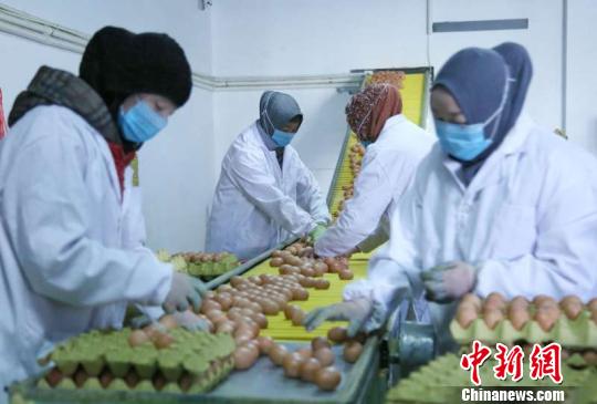 記者在現場看到,一枚枚的小雞蛋從大通金悅生態養殖場的雞舍中孕育,自動化的運輸帶將帶著母雞體溫的蛋傳送到分裝倉庫,來自峽口村、俄博溝村和阿家溝村貧困戶分揀員將它們分撿,而來自西寧市、大通縣的運輸車早已排隊等候。