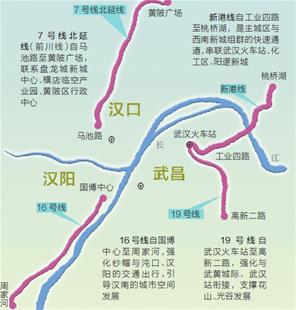 這4條線分別是:7號線北延線(前川線)自馬池路至黃陂廣場,聯系盤龍城新城中心、橫店臨空產業園、黃陂區行政中心;16號線自國博中心至周家河,強化紗帽與沌口、漢陽的交通出行,引導漢南的城市空間發展;19號線自武漢火車站至高新二路,強化與武黃城際、武漢站銜接,支撐花山、光谷發展;新港線自工業四路至桃橋湖,是主城區與西南新城組群的快速通道,串聯武漢火車站、化工區、陽邏新城。