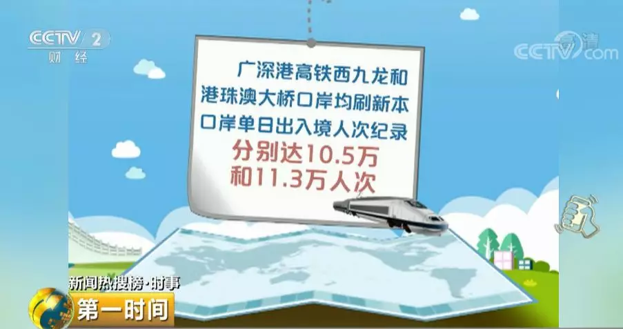 廣深港高鐵西九龍和港珠澳大橋口岸均刷新本口岸單日出入境人次紀錄,分別達10.5萬和11.3萬人次。