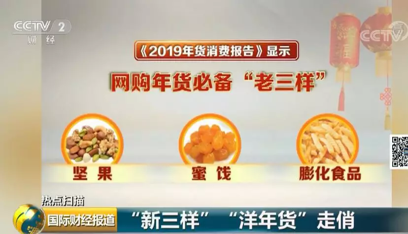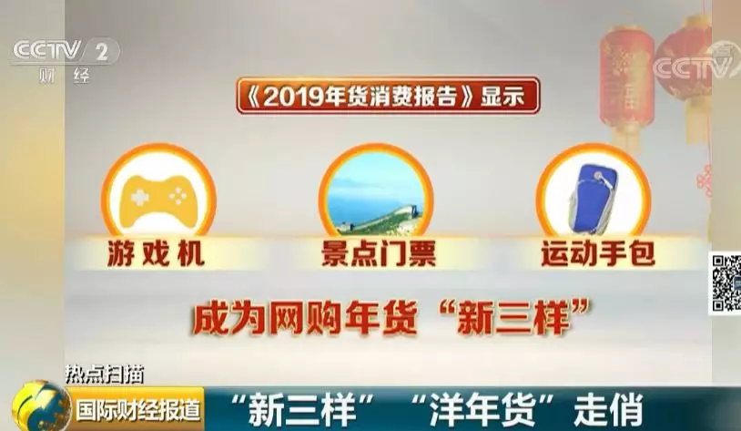 《2019年貨消費報告》顯示,堅果、蜜餞和膨化食品仍是網購年貨必備“老三樣”,但新需求正在誕生,在增速方面,游戲機、景點門票和運動手包成為網購年貨的“新三樣”。