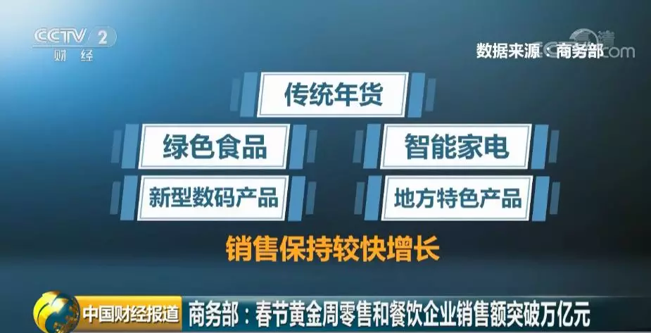 春節假期,傳統年貨、綠色食品、智能家電、新型數碼產品、地方特色產品等銷售保持較快增長。