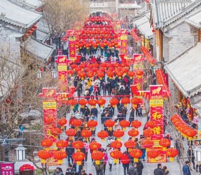 春節(jié)期間,游客在山東省濰坊市青州古城景區(qū)參觀游覽。