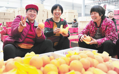 電商平臺已成為消費(fèi)者購物的重要渠道。圖為在湖北省宜昌市夷陵區(qū)電商產(chǎn)業(yè)園,一家農(nóng)產(chǎn)品供應(yīng)鏈公司員工在對網(wǎng)購鮮橙打包裝箱。