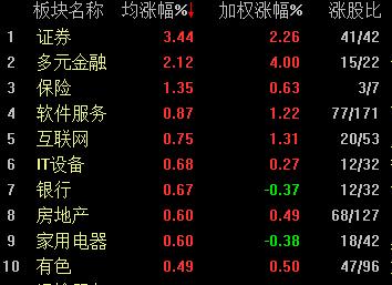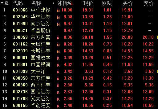 行業板塊方面,證券、多元金融、保險等板塊漲幅居前,昨日大漲的證券板塊今日繼續上揚,中信建投、華林證券、南京證券、華鑫證券等個股漲停。