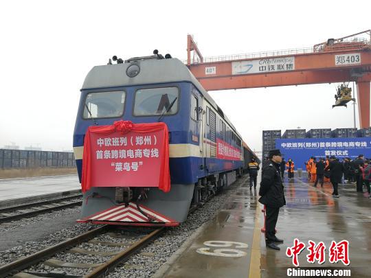 資料圖:中歐班列(鄭州)首條跨境電商專線開行。 董飛 攝