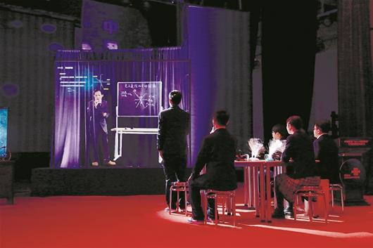 這次別開生面的公開課,由位于福州的物理特級教師蔣大橋和位于武漢的物理高級教師蘇航主講。上課鈴響,在一盞白色聚光燈的追隨下,蘇航老師緩步走上講臺。“請同學們掌聲歡迎遠在福州的蔣大橋老師!”隨著蘇航的手臂一揮,蔣大橋老師的三維全息投影人像立刻出現在屏幕上。“這次課程仿佛置身于立體電影之中,我們和蔣老師雖然相隔千里,但也能身臨其境般互動交流,真是太奇妙了!”現場學生感慨道。