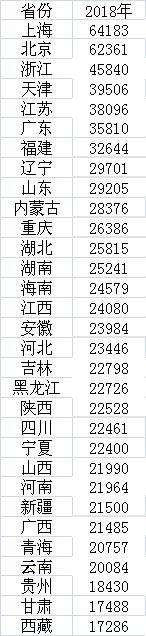國家統(tǒng)計局日前公布了2018年各省份居民人均可支配收入數(shù)據(jù)。數(shù)據(jù)顯示,去年京滬首超6萬大關(guān),在各省中遙遙領(lǐng)先,浙江位居第三。從地區(qū)差異來看,東西部差距仍很大。