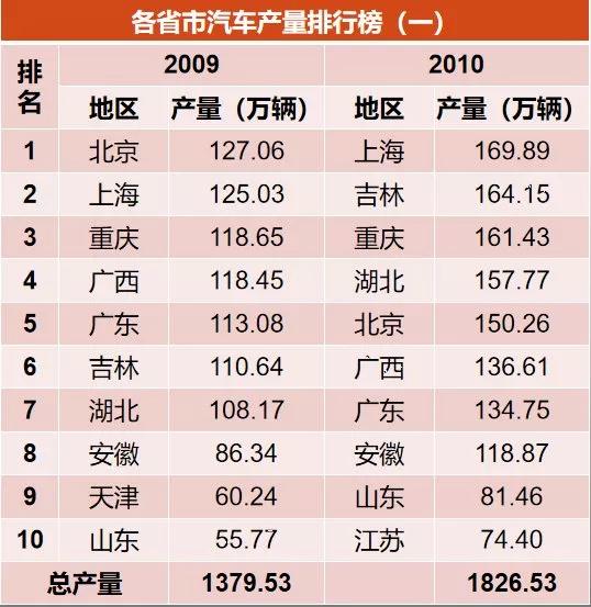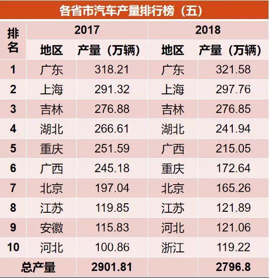 到了2018年,只剩下廣東、上海、吉林、湖北、廣西,這意味著北京、重慶掉出了第一陣容。僅看產(chǎn)量,重慶2018年較2016年減少了近百萬輛。