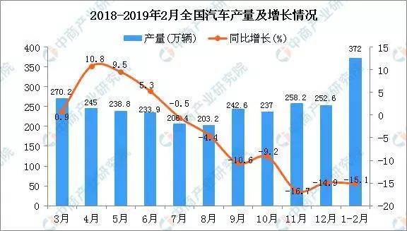 但從今年的開局情況看,產(chǎn)量下滑還并未見底。2019年1-2月全國汽車產(chǎn)量為372萬輛,同比下降15.1%。