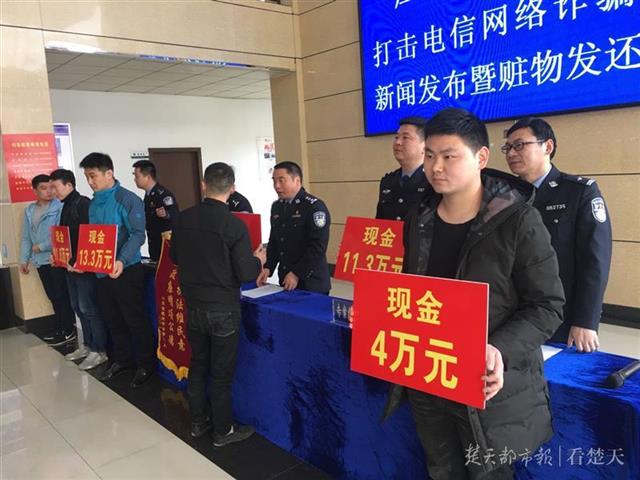 山東德州的趙先生被該團伙騙了13萬余元,一家人都覺得這個錢肯定是追不回來了。接到應城市公安局退贓的電話后,趙先生激動得幾天睡不著覺。“提前十幾天就買了來應城的車票。”趙先生告訴記者,這次特地做了一面錦旗送來,“感謝應城警方,為人民群眾辦了大好事。”