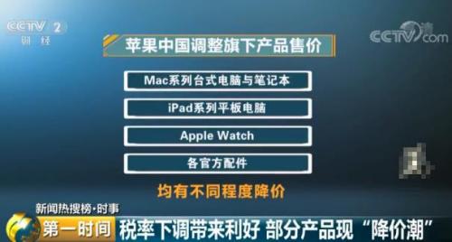 蘋果中國也調整了旗下產品的售價。其中,iPhone XS與XS Max系列降幅500元,iPhone XR系列降300元。Mac系列臺式電腦與筆記本、iPad系列平板電腦、Apple Watch、各官方配件均有不同程度降價。