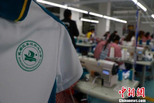 走訪扶貧車間時(shí),十幾名生產(chǎn)工人身著統(tǒng)一工作服,在縫紉機(jī)前緊鑼密鼓地制作校服,嫻熟地縫制一堆成形的布條,還有三四個(gè)女工則在旁邊整理布條,他們干活都很麻利。
