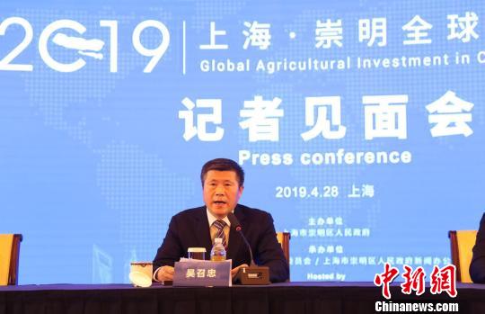 2019上海·崇明全球農(nóng)業(yè)招商記者見面會4月28日在滬舉行,圖為上海市崇明區(qū)副區(qū)長吳召忠。 張亨偉 攝