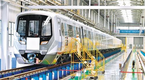 上圖 在中車齊車集團石家莊公司地鐵總裝廠房內,工作人員正在調試地鐵車輛。