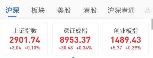 滬指開盤漲幅0.1%,報2901.74點;深成指開盤報8953.37點,漲幅0.34%;創業板指開盤報1489.43點,漲幅0.39%。