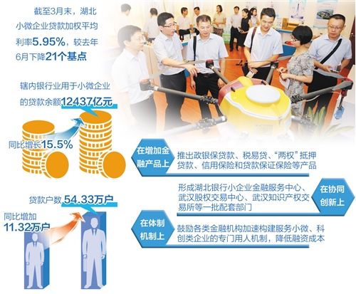 統計數據顯示,今年一季度,湖北省本外幣各項貸款2676億元,同比多增626億元,創歷史同期最高水平。截至3月末,小微企業貸款加權平均利率5.95%,較去年6月的高位下降21個基點。轄內銀行業用于小微企業的貸款余額12437億元,同比增長15.5%;貸款戶數54.33萬戶,同比增加11.32萬戶。