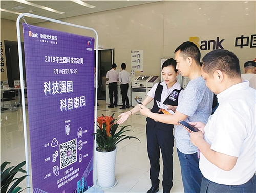 全國科技活動周期間,光大銀行武漢分行工作人員向顧客普及金融科技知識。汪臘春攝(中經視覺)