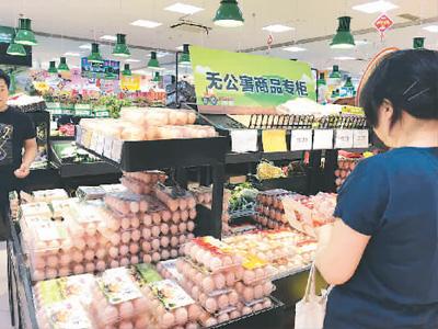北京某超市里,居民在挑選無(wú)公害雞蛋。