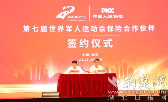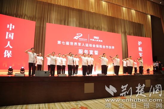 荊楚網客戶端—荊楚網消息(記者程智 通訊員蔣靜雯 伍曉旻)6月20日下午,第七屆世界軍人運動會保險合作伙伴簽約儀式暨新聞發布會在武漢會議中心隆重舉行,中國人民保險集團股份有限公司(以下簡稱“中國人?!保┱匠蔀榈谄邔檬澜畿娙诉\動會保險合作伙伴,第七屆世界軍人運動會執行委員會向中國人保授牌。22名保險服務代表進行了現場宣誓。