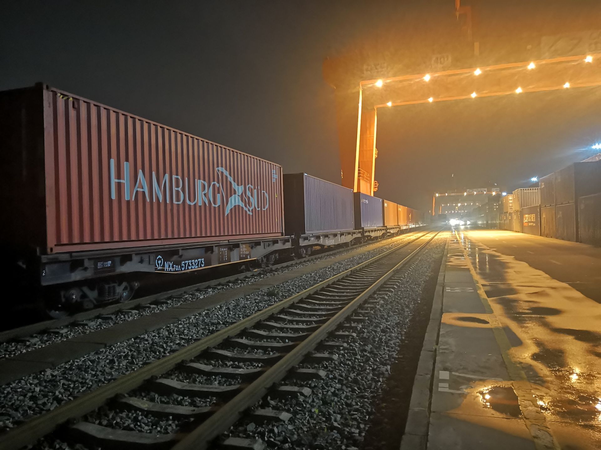 7月12 日22:29 ,編組50輛、滿載武漢及長三角、珠三角地區企業生產的電子元器件、衣服鞋帽、保健品原料、電子產品的X8015 /6次列車從武漢局集團有限公司漢西車務段吳家山站安全開出,經漢丹線、焦柳線運行,由阿拉山口出境,駛往德國杜伊斯堡。
