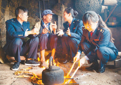 2018年1月,云南省、昆明市和東川區三級稅務人員到東川區因民鎮桃樹坪村精準扶貧。侯斌攝(人民視覺)