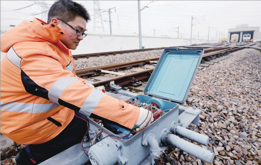 近日,一場高鐵維修技能演練活動在中國鐵路上海局集團有限公司金山北綜合維修工區內舉行,為即將到來的鐵路春運做好準備。圖為高鐵維修工鮑亞在工區內檢修測試道岔轉轍機。 方喆 攝