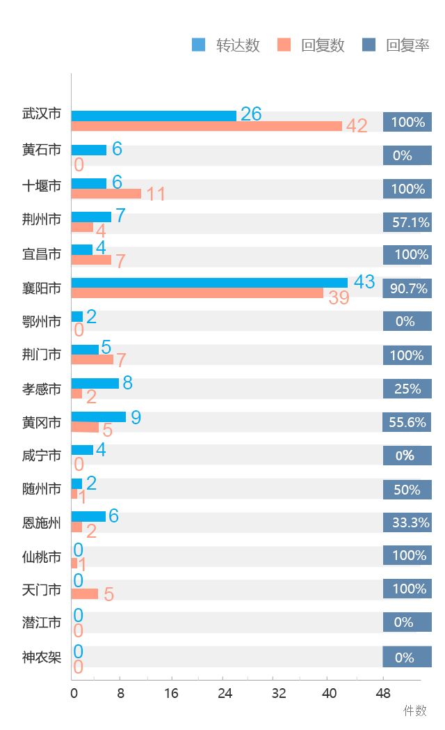 武漢市:轉達(22+4=26條),已回復42條(含主動回復),回復率100%。