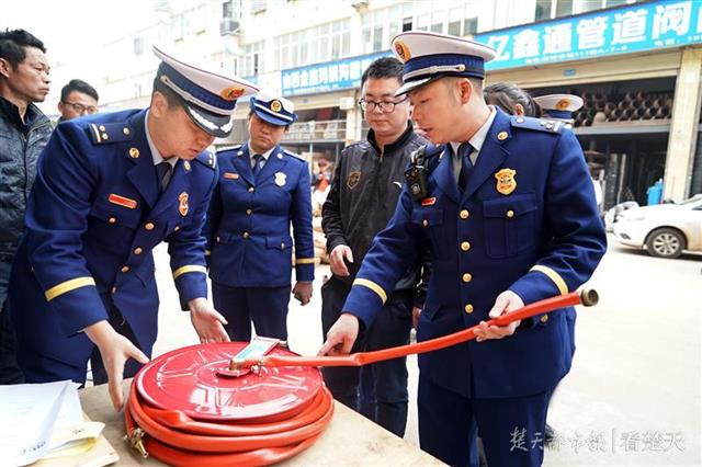 13日下午2許,市區消防部門、市場監督管理部門組成25個檢查組,在全市范圍內開展集中整治,對濱江御府項目在建工地、泉柳消防經營部、萊特建材市場等單位場所進行檢查。楚天都市報記者跟隨武漢消防來到東西湖區萊特建材市場現場直擊。有趣的是,見執法人員到來,一些店面趕緊“關門”,企圖“閉門謝客”。武漢消防救援支隊防火監督處處長羅洪波介紹:“大白天的不做生意,看到檢查人員過來了,就趕緊關門,這肯定是心里有鬼。不過,你們放心,一些重點部門我們已經安排了人員提前摸排蹲守。”