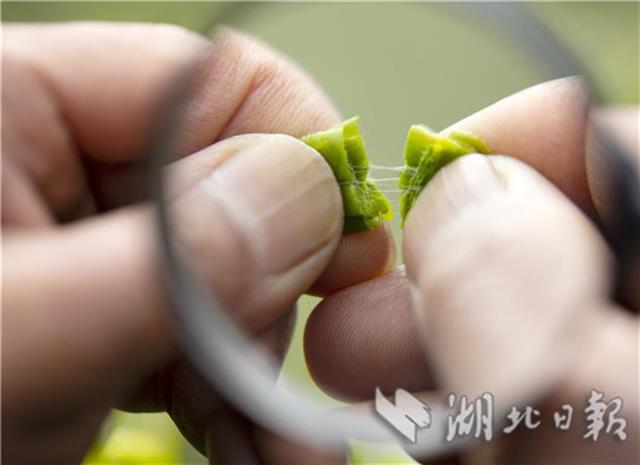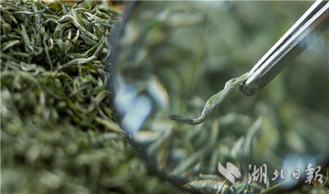 4月1日,在秭歸縣九畹溪鎮(zhèn)峽口村九畹絲綿茶生態(tài)基地,茶葉專家龔萬祥展示絲綿。