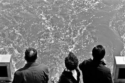 骨灰入海后,親屬們將花瓣撒入大海陪伴親人攝影/本報記者 魏彤