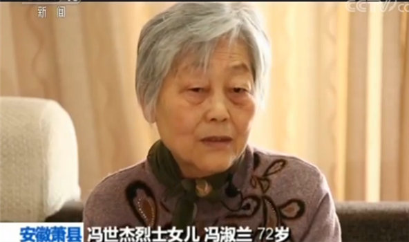 馮世杰烈士女兒馮淑蘭72歲:那時候政府就發烈屬證了,確定他(父親)已經犧牲了,也找不到,反正就這樣失蹤了。這60多年來,就這樣,(我們)娘倆相依為命,也沒有一點(父親)音訊,就這樣過來了。