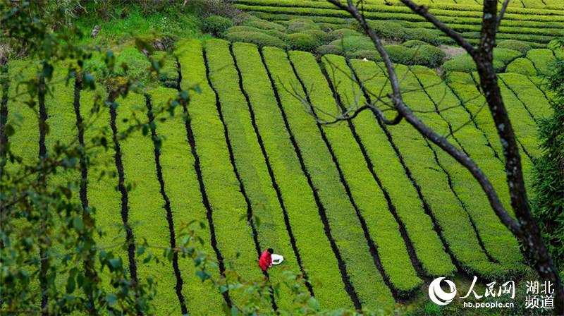 人民網鶴峰4月5日電 4月3日,湖北省鶴峰縣五里鄉尋梅村楓樹堡林間,生態大蔸茶茶園里一派繁忙,當地茶農正在搶抓農時采摘春茶,巧手翻飛間,茶簍里早已裝滿半寸長短的新芽。