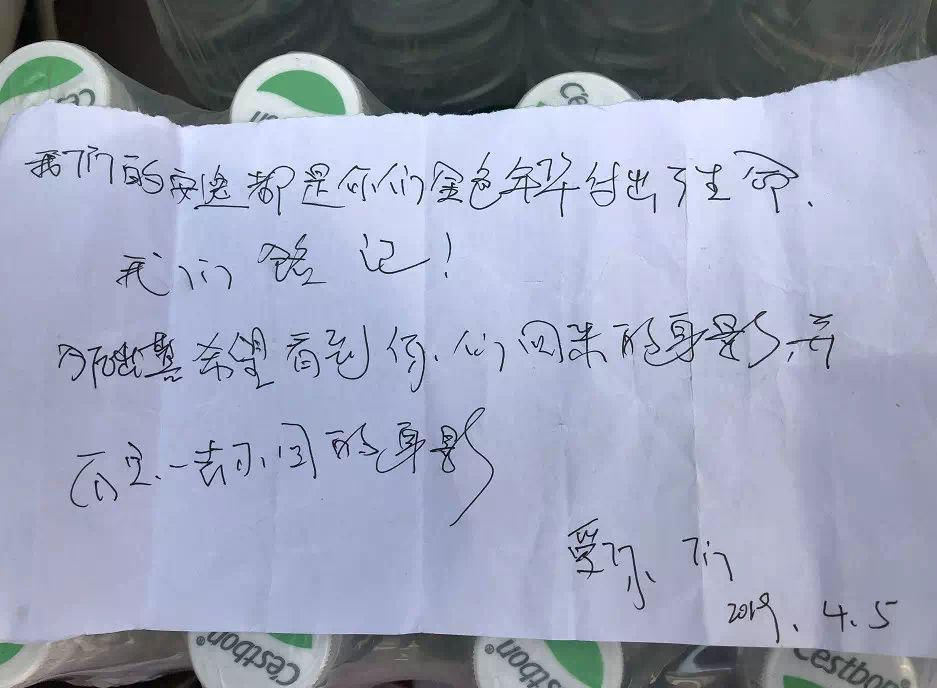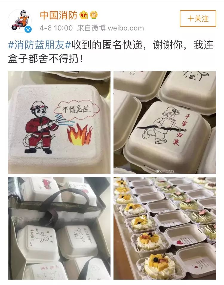 4月6日,@中國消防 發布微博,曬出了某地消防隊員收到的匿名快遞。