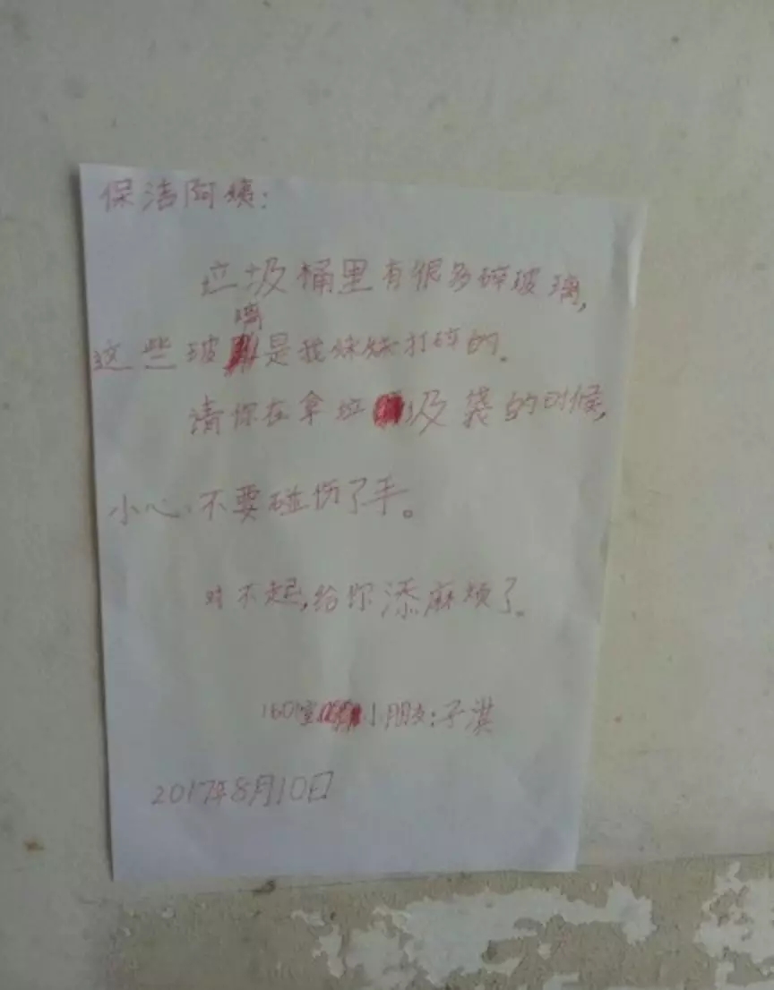發(fā)現(xiàn)垃圾桶旁貼著這樣一張紙條
