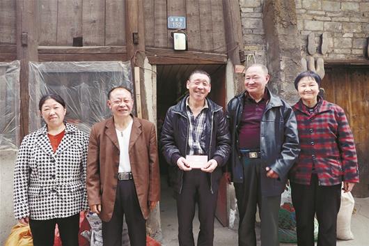 圖為:王德友(中)和哥嫂(右一右二)等親友合影