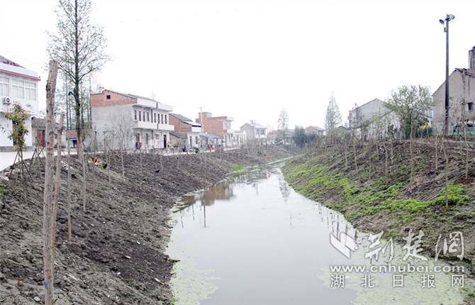 鄢家溝溝渠兩旁新栽種的景觀樹。攝影 通訊員 陳芬