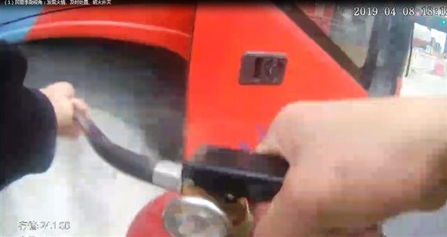 4月8日下午,滬蓉高速公路宜巴段,省高警總隊興山大隊民警李勛、周銳在神農溪省際收費站執勤。晚上6時15分許,一輛渝A號牌的大客車迎面駛來,車輛在行經民警李勛面前時,李勛突然發現該車右前輪輪轂內有明火在往外冒。然而此時大客車司機根本沒有察覺,車內乘客也沒意識到危險,車輛還在繼續前進徑直往收費站站內駛去。“要是輪胎的火燒到車里就危險,即便沒燒到車里,輪子燒垮了車也會翻。”李勛意識到客車十分危險,立即沖上前攔停該車,記者從視頻中看到,車門一打開,李勛就大聲喊著“趕緊下車,車輪著火了。”一連喊了6聲后,他又沖上車疏散司乘人員下車避險。