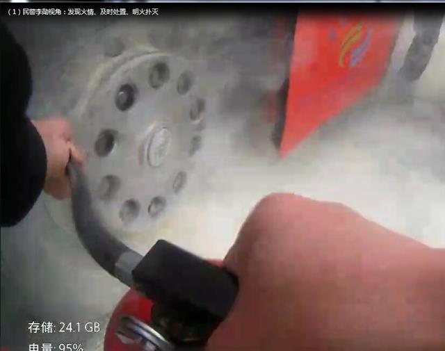 一連用完三瓶滅火器,緊急之下李勛的手指都因為拉開滅火器拉環破皮了,在其他現場工作人員的協助下,3分鐘后,明火基本得到控制。隨后,李勛、周銳協同收費站工作人員和大客車駕駛員一同潑水對車輪輪轂著火部位進行潑水降溫。從發現險情到處置完畢,經過了約20分鐘的緊張處置,險情得到了有效控制,所幸民警發現及時,沒有人員受傷及財產損失。