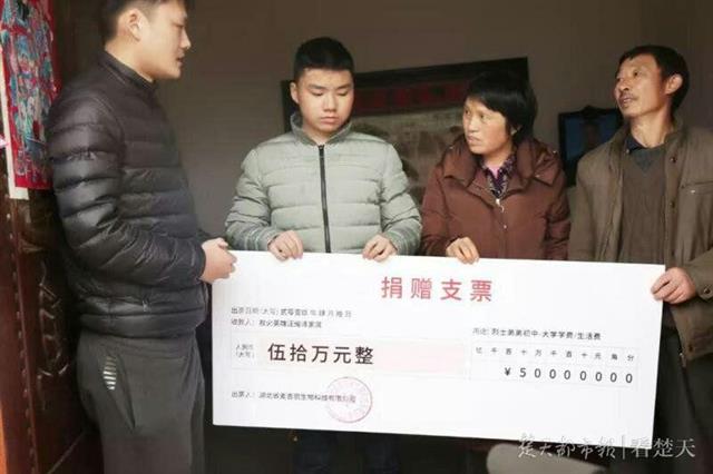 楚天都市報4月12日訊(記者劉閃 通訊員安俊松)英雄汪耀峰雖然犧牲了,但他永遠活在人們的心中。4月10日,湖北企業家周正赴孝昌縣看望汪耀峰烈士的家屬,并捐款50萬元資助烈士弟弟從初中到大學的學費和生活費。