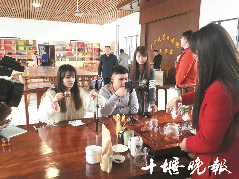 當天上午10時,直播開始。兩位主播冒雨來到浪河鎮代灣村農戶散養土雞的山林,品嘗農戶自養土蜂產的蜂蜜,直播抓土雞、撿土雞蛋等一系列活動。隨后,主播們又來到香菇種植大棚采摘香菇,并在農家餐館品嘗了土雞蛋、灰蛋、小花菇炒臘肉、野生翹嘴鲌等特色農家菜。在浪河鎮的圣和茶葉公司,主播們品新茶、了解制茶工藝。廣大網友通過觀看直播視頻,深入了解了丹江口市。